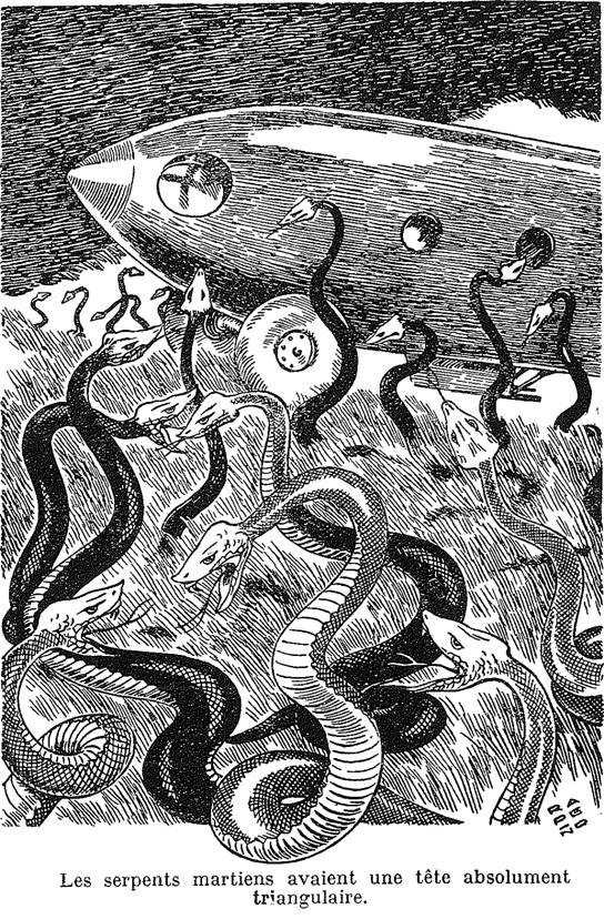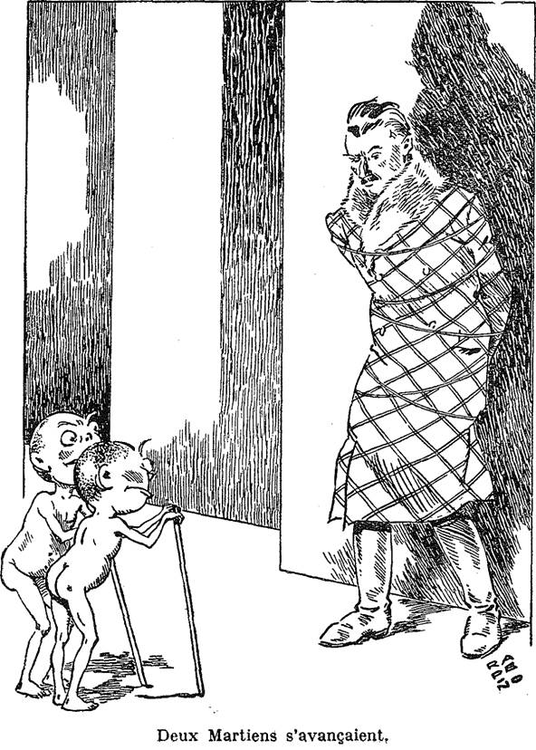 Les effusions calmées, le docteur Helvétius manifesta l’intention de visiter la planète Mars… mais nous lui fîmes comprendre, non sans difficulté, que c’était s’exposer inutilement et que d’ailleurs les Martiens qu’il rencontrerait ressembleraient tous à ceux que nous avions amenés…