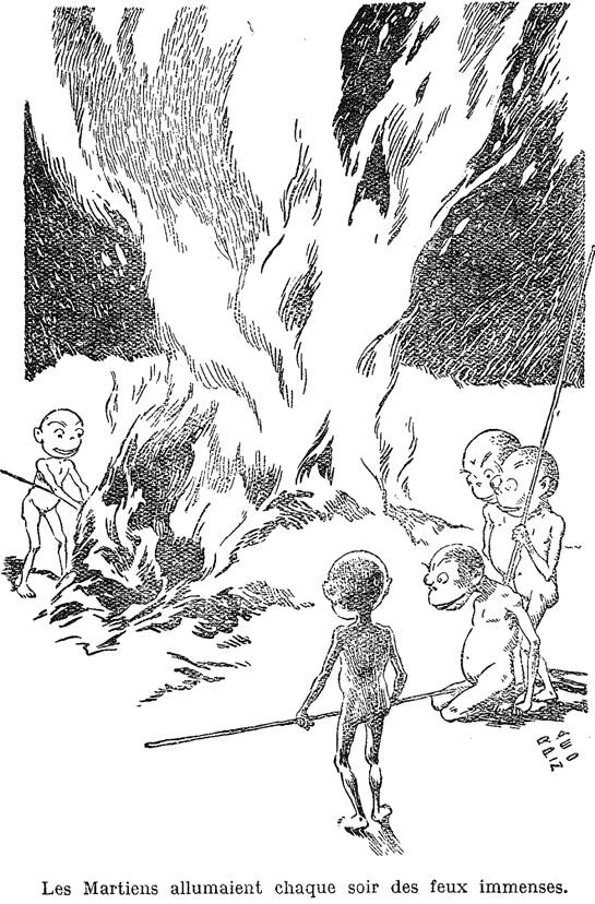 [2] En effet, quand après notre équipée aux mers de glace, nous dîmes à Razaïou que nous avions voulu lui montrer une « voiture volante », il nous répondit stupidement que les Martiens ne nous avaient pas attendus pour inventer des véhicules aériens et il nous montra alors ces fameux « mayocleï » dont je parle plus loin et qui ne sont simplement que des engins fort bien conçus au point de vue mécanique mais sans valeur aucune comparés à notre Répulsite.