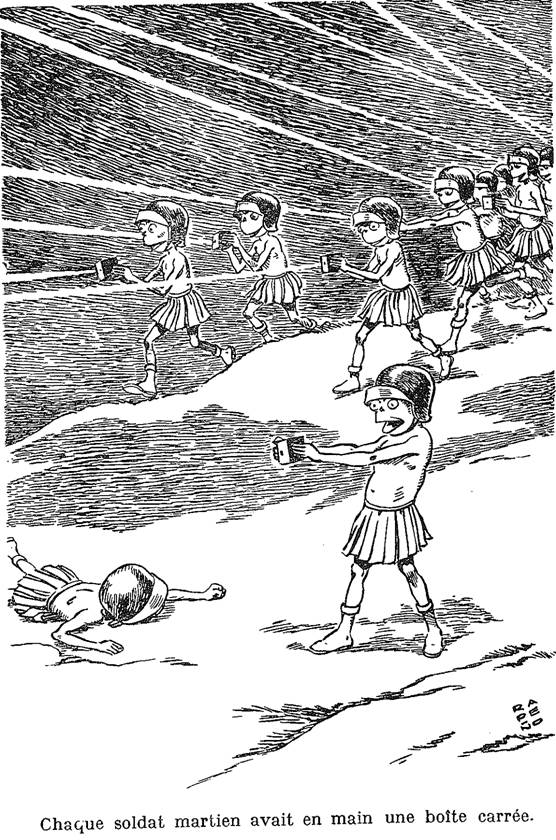 Par bonheur, notre départ passa inaperçu et je m’en félicitai, car nous n’eûmes point à faire, ce qui m’eût considérablement chagriné, des hécatombes de Martiens…