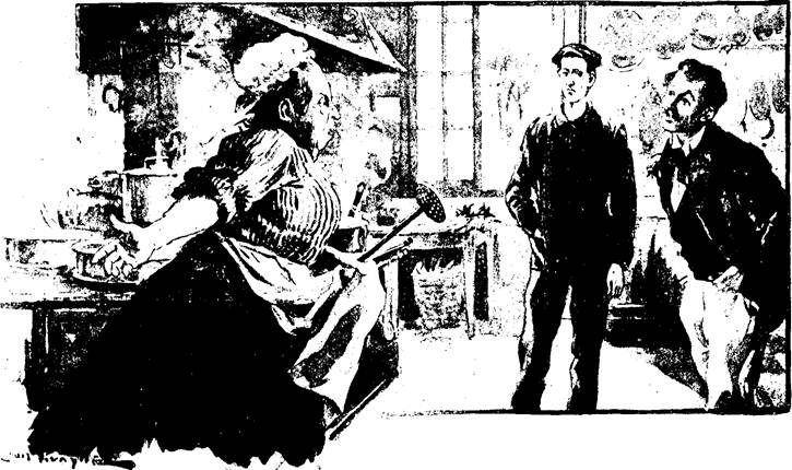 Et tout à coup, la cuisinière, regardant son fils adoptif bien en face :