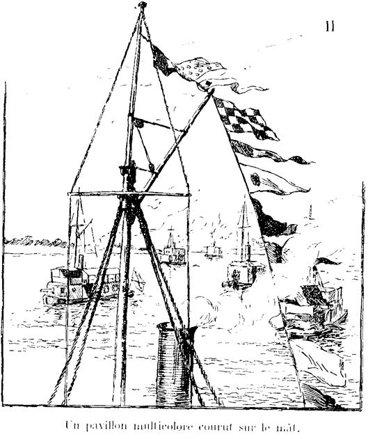 Mais où la joie devint du délire, ce fut lorsqu’un héraut, richement costumé, annonça qu’au lendemain de la victoire de Thèbes, le généralissime Robert Lavarède, aujourd’hui Robert Ier d’Égypte, avait fait jouer le télégraphe installé par l’armée insurgée durant sa longue marche vers le nord.