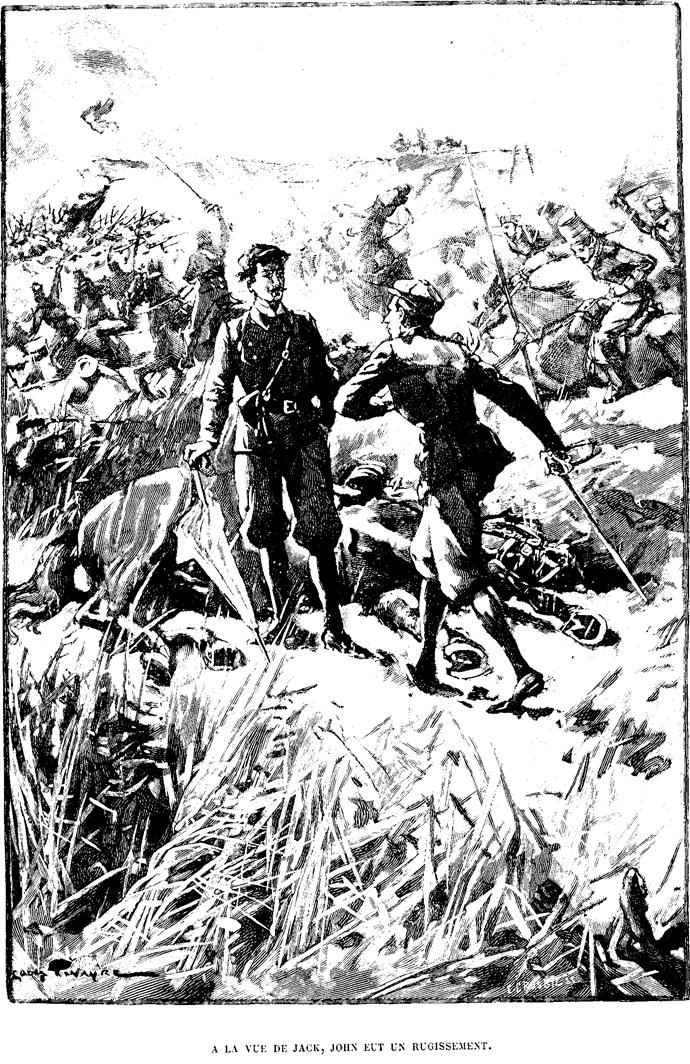 – C’est pour cela, fit ironiquement le jeune homme, que Jack préfère le vin à l’eau, que tandis que j’apprenais la boxe nationale, il étudiait la « savate française », qu’il lit Victor Hugo plutôt que Milton, La Fontaine et Molière, plutôt que Shakespeare ou Sheridan, Alexandre Dumas plutôt que Walter Scott. Monsieur dédaigne le pudding, chante les louanges de la pâtisserie française… Tout à l’heure encore, il donnait le pas au cognac sur le wiskey. En politique, c’est la même chose. N’affirmait-il pas encore, l’autre soir, que notre occupation de l’Égypte, où nous sommes en ce moment, était un abus de la force.