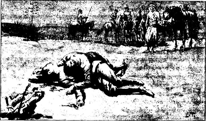 – Ah ! mes chers enfants, quel spectacle. La campagne déserte, les herbes folles couvrant les champs naguère cultivés. De loin en loin, au bord de la route, un corps humain, pestiféré, que le mal avait terrassé là et que nul ne songeait à ensevelir. J’allais toujours, fermant les yeux, demi-folle d’épouvante, mais poussée en avant par une force irrésistible… Enfin j’aperçois le groupe de cabanes formant le hameau. J’entre dans la rue silencieuse, abandonnée. Comme impressionné par la solitude, le cheval a ralenti le pas. Il s’arrête de lui-même devant la septième maison. Ô joie ! le jardin est constellé de fleurs ; la porte de la cabane est ouverte… la veuve Oriemi doit être là. J’appelle. Rien. J’appelle encore, sentant mon angoisse revenir ; ma voix s’étrangle dans ma gorge… Personne ne répond. Alors je saute à terre, je pénètre dans la cour, je contourne un massif de lauriers en fleurs et je vois, étendue en travers du sentier, la face marbrée de taches noires, immobile, morte… la pauvre nourrice Oriemi. La peste avait passé par là.
