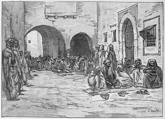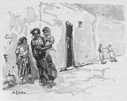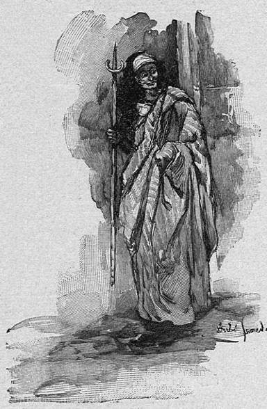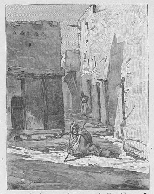 Partout grouille une population stupéfiante. Des gueux innombrables vêtus d’une simple chemise, ou de deux tapis cousus en forme de chasuble, ou d’un vieux sac percé de trous pour la tête et les bras, toujours nu-jambes et nu-pieds, vont, viennent, s’injurient, se battent, vermineux, loqueteux, barbouillés d’ordure et puant la bête.
