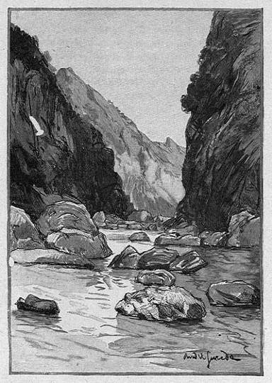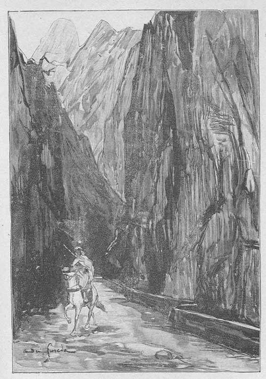 Le ravin se rétrécit comme s’il allait se refermer. Un grand bruit sur ma tête me fait tressaillir. Un aigle surpris s’envole de son repaire, s’élève vers le ciel bleu, monte à coups d’aile lents et forts, si large qu’il semble toucher aux deux murailles.