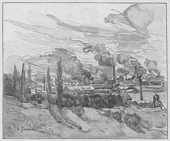 Voici de vastes bâtiments, des cheminées de fabriques, une sorte de petite ville abandonnée. Ce sont les magnifiques usines de la Compagnie franco-algérienne. C’est là qu’on préparait l’alfa avant le massacre des Espagnols. Ce lieu s’appelle Aïn-el-Hadjar.